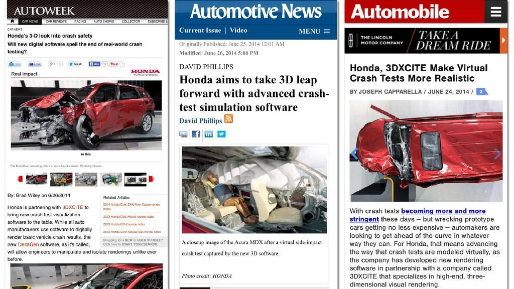 Honda Real Impact was 3DEXCITE’s most talked about project in the international and national press in 2015. The images I art directed and composited represent the virtual crash tests system in all PR efforts.